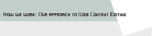 Content, Design and Functionality It is crucial to pursue an integrated approach to content, visual design, and the functionality of your website. Good information design enables users to quickly locate crucial information. Succinct text together with tables, lists and boxes makes it easy for visitors to scan information for relevancy. Content and design need to seamlessly support each other, while optimum functionality enables visitors to interact with your website’s back end. Deconstruction and Rewriting If necessary, AsiaEditing deconstructs its clients´ websites, analysing each web page and its explicit and implicit message and modifying it as required. Text will be rewritten, rearranged and linked in a more logical and coherent fashion.